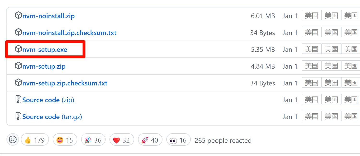 进入nvm-windows发布页面,选择nvm-setup.exe安装。